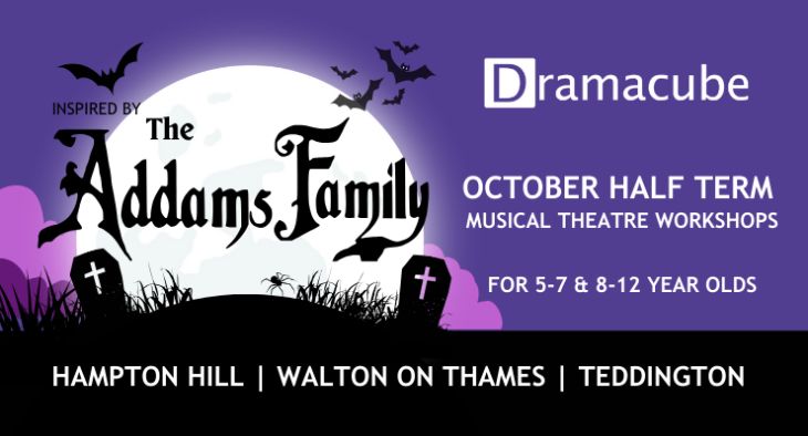 Dramacube October Half Term Workshops Addams Family inspired Musical Theatre workshops for 5-7 and 8-12 year olds. These spooktacular performing arts sessions filled w...