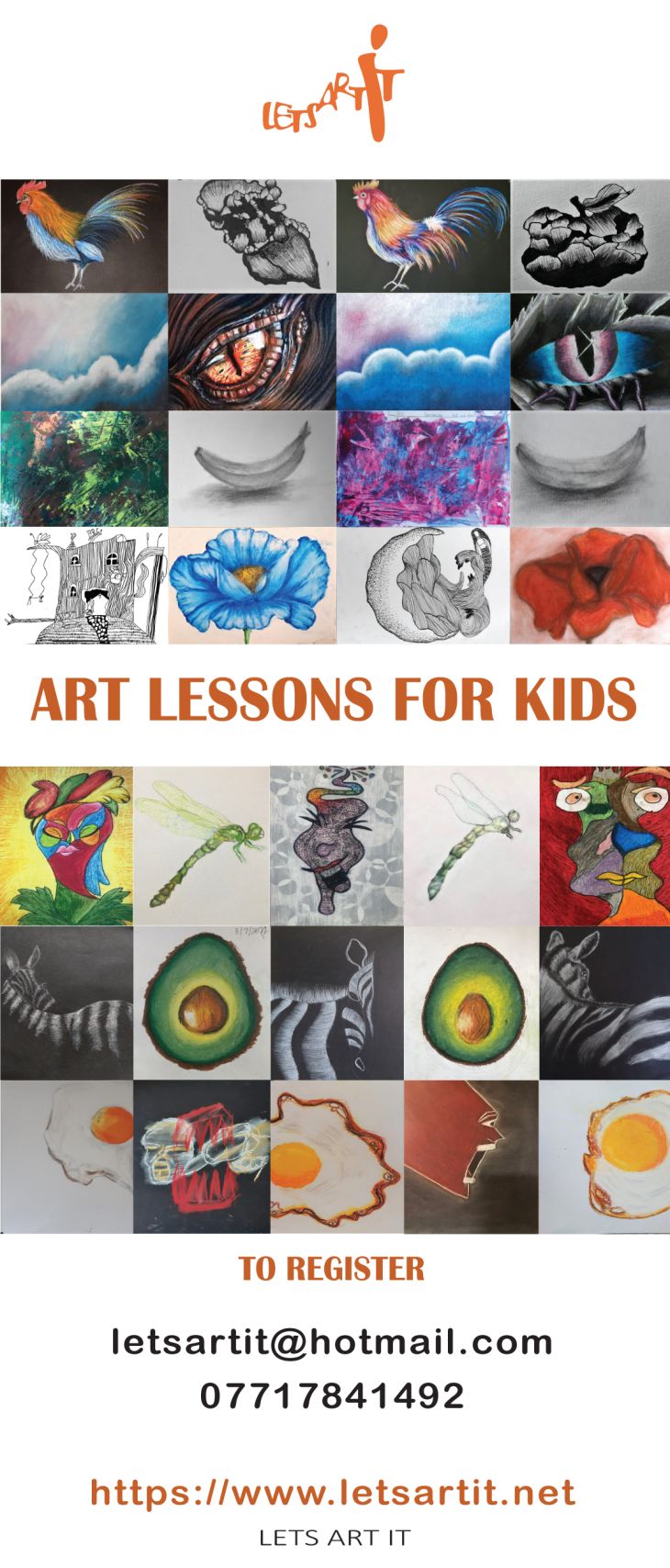 LETS ART IT is an art club for kids based in Colchester, Uk. It offers both GROUP & ONE-TO-ONE lessons for children. Classes are available ONLINE on Zoom or FACE-TO-FACE...